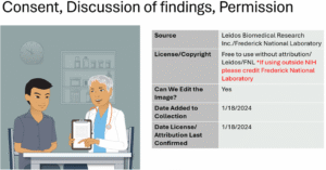 The development of the toolkit began with the creation of a comprehensive “picture library”—a curated collection of photos, cartoons, and medical illustrations designed to facilitate communication of information about common procedures found in research consent forms. These images were sourced through targeted web searches, with a focus on identifying resources with unrestricted or broad reuse rights, for example those in the public domain or with Creative Commons licenses. The picture library became the foundation of the toolkit, enabling consent developers to draw from a vetted pool of more than 200 images, rather than conducting time-consuming searches for new images each time they draft a consent.