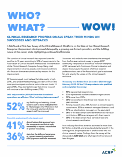 ACRP empowers organizations to trust that their studies are in the hands of qualified professionals. When trained and credentialed by ACRP, clinical research teams have the competence and confidence organizations can trust to deliver excellence and maintain integrity in clinical research.